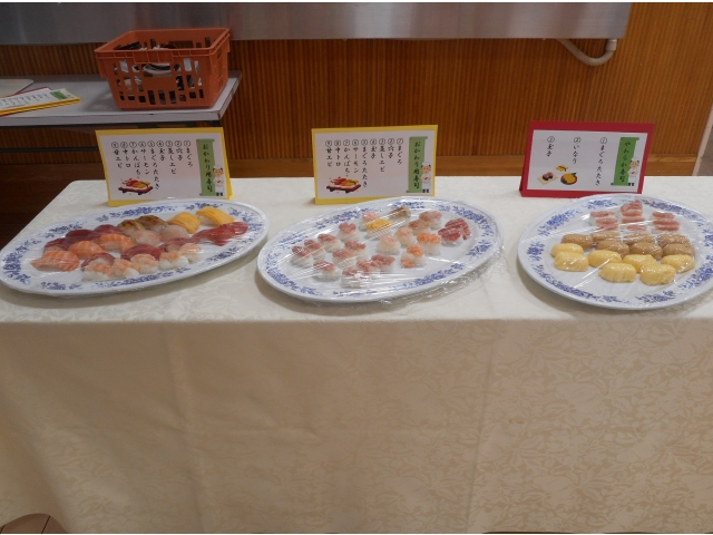 すしを握る練習をしてもらい、利用者様の目の前でお寿司を握って頂きました。