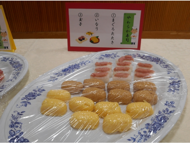 嚥下状態の関係で、お寿司が食べる事が難しい利用者様にも柔らか寿司として見た目でも楽しんで頂けるように工夫してくださり、ありがとうございました。