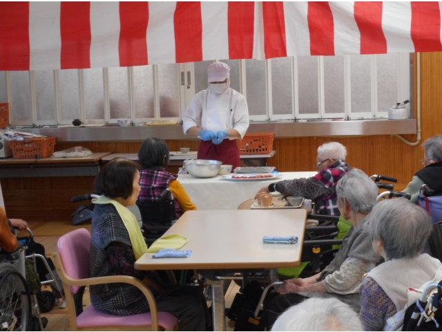 利用者様も真剣にその様子を見ており「早く食べたいな」や「いっぱい食べてもいいの?」と所々で笑顔が見られました。