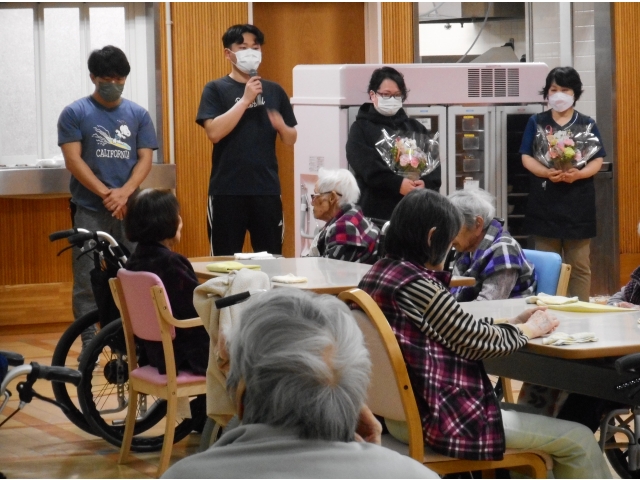 3月も終わりですね。この時期は職員の別れの季節で転勤者、退職者で利用者様、職員共に寂しい時期でもあります。別れに涙を流してくれる利用者様もおります。皆様にもつらい季節ですが、4月には逆に新しい出会いがあります。豊川苑に来られる職員には新しい風を吹かせて頂き、盛り上げてもらえるといいなっと思います。