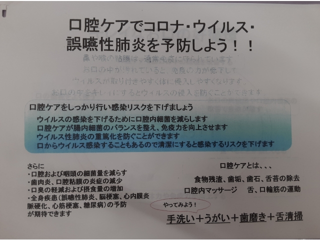 日頃よりお世話になっている訪問歯科の先生が来てくださり、利用者様の口腔ケアがしっかり出来るように 指導していただきました。