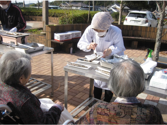 食欲の秋がやってまいりました!秋と言えば…秋刀魚❣豊川苑では、職員が秋刀魚を炭で焼いて利用者の皆様に振る舞い秋の味覚を満喫して頂きました。
