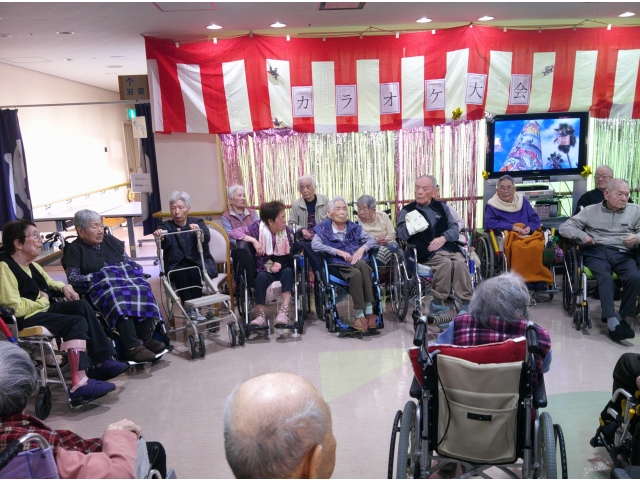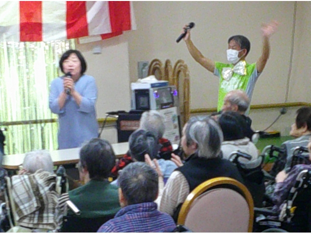 11月22日14時から1階2階利用者様と職員希望者が自慢の歌を披露してくれました。一緒に口ずさんでいる方もたくさんみえました。リズムにのって手拍子したり応援も盛り上がり、楽しい秋の一日となりました。