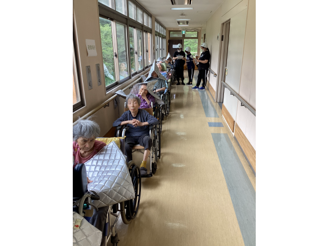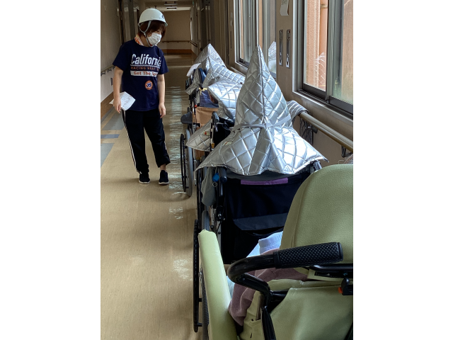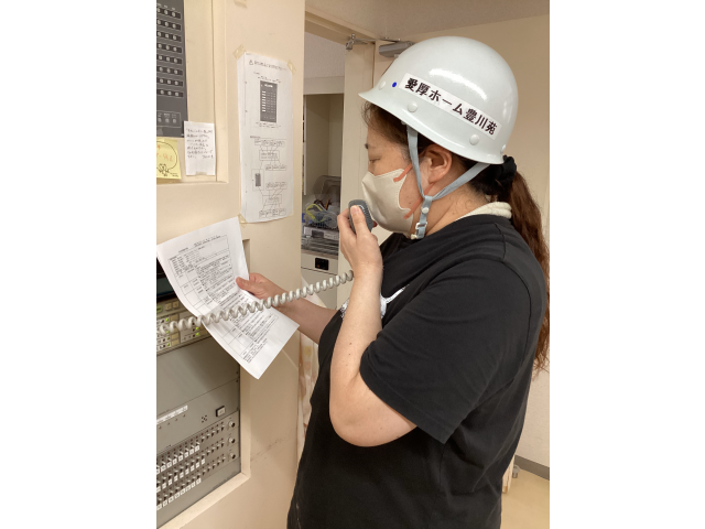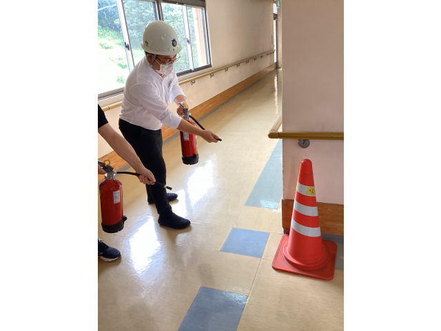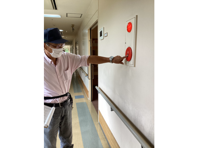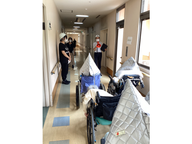 7月19日、夜間に火災が起こったと想定した防災訓練が行われました。夜を想定している為、夜勤者のみでの避難誘導となりました。