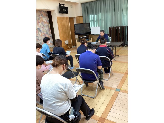 ウェルネスやわた歯科の内藤医師より、今回は、義歯の外し方や口腔ケア時のポジショニング、歯並び別のケアのポイントについて助言・指導を受けました。特に、ケアに注意が必要な歯並びについて、分類して解説していただきました。今後の業務に活かしていきたいと思います。