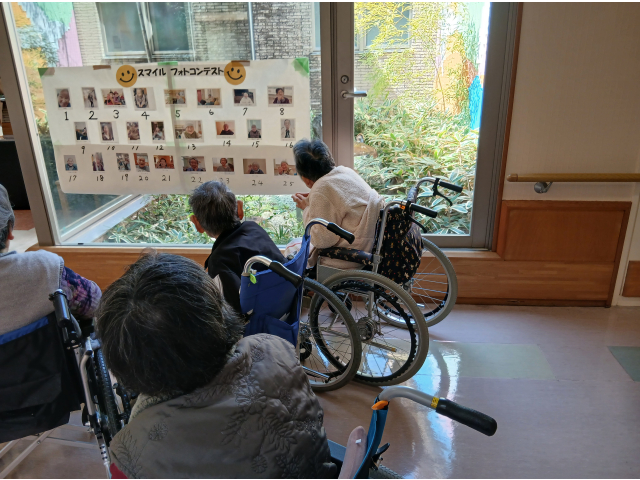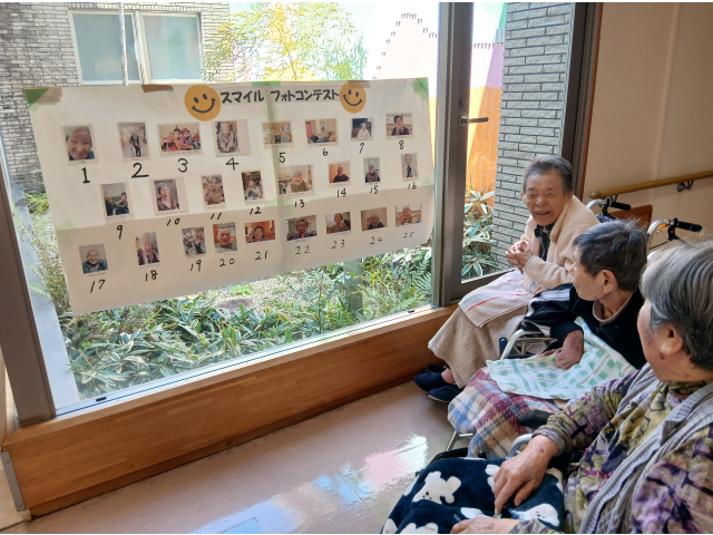 日々の生活の中で見せてくださる自然な笑顔や、行事での楽しそうなひとときなど、心温まる写真がたくさん集まりました。掲示された写真を前に、「この表情いいね」「元気がもらえるね」と、利用者様も職員も和やかに会話を楽しみながら投票に参加されていました。