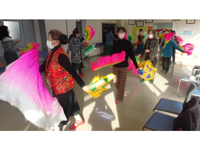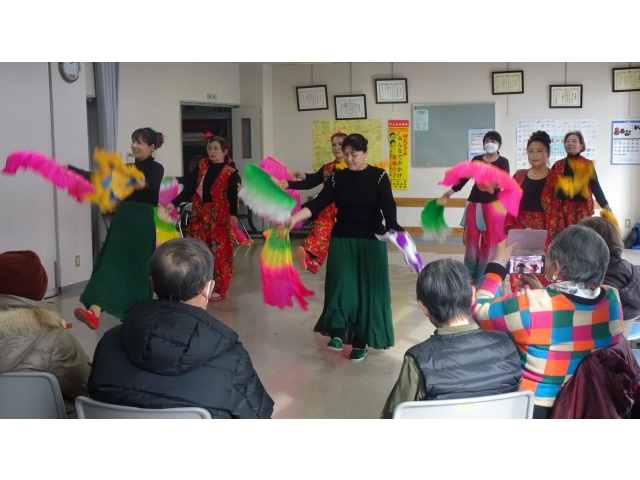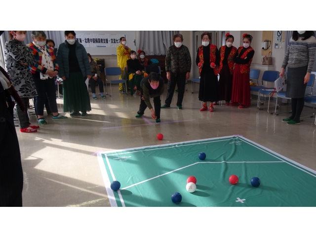 今回は18名の帰国者が参加され、芸達者な2世の方々が歌や踊りを披露して、1世の方々を楽しませました。途中、ボッチャ体験を行い、最後は、中国東北部の群舞「秧歌(ヤンガー)」を全員で踊って、賑やかに会を閉じました。