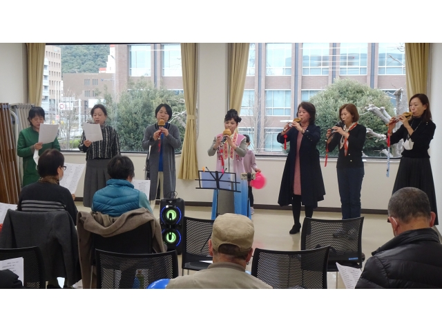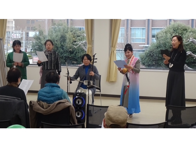 音楽は、葫芦絲(フルス、中国のひょうたん笛)合奏と合唱、二胡伴奏に合わせた合唱、高齢の帰国者1世の独唱・詩の暗唱、中国東北地方独特の大衆群舞「秧歌(ヤンガー)」、扇を用いた踊りと歌などが続きました。