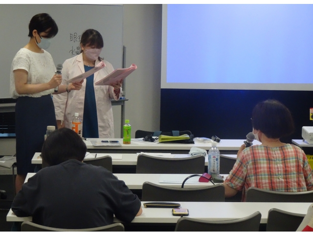 最後は、医療現場を想定したロールプレイ。医師役(日本語)と患者役(中国語)の間に入って、メモを取りながら、「眼の異常を訴える患者の病状説明を医師に伝える」「医師からの病名・治療法説明を患者に伝える」練習を行いました。