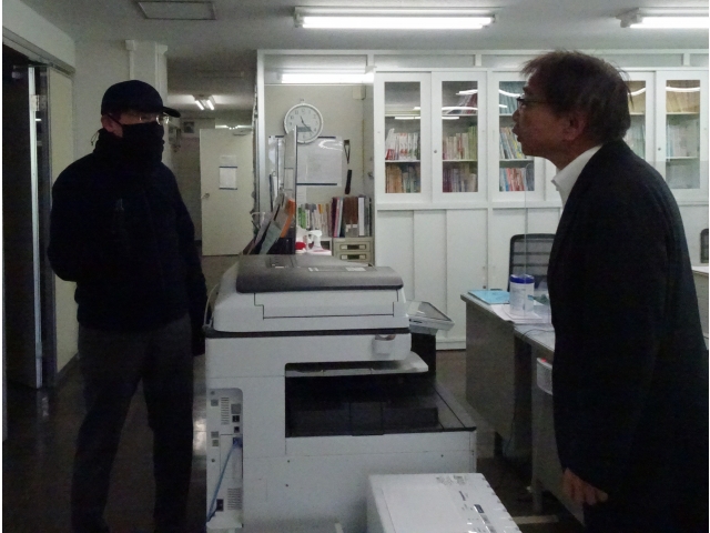 そして、職員が不審者に扮し、「金を貸している相手を探す不審者の侵入」が発生した状況を設定し、職員が手分けして上記手順がスムーズに行えるかどうかのシミュレーションを行いました。