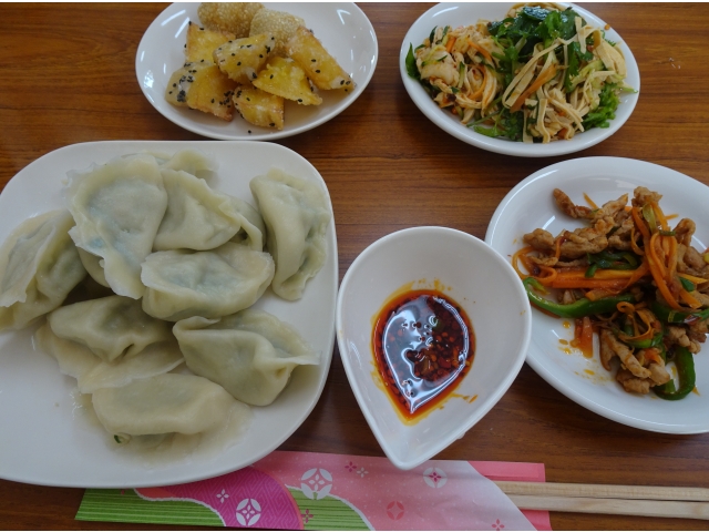 今回は「食文化交流」として、生まれ育った中国の料理を手作りし、試食して楽しみました。参加者は帰国者1世とその子ら14人。