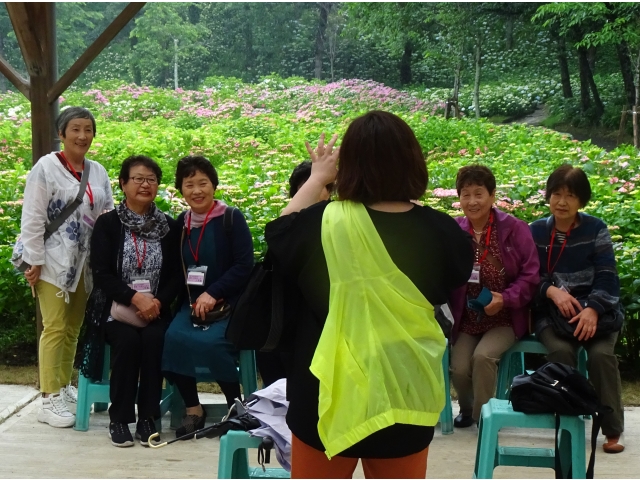 また、きれいなアジサイをバックに、親しい仲間で記念写真を撮りあう方もありました。