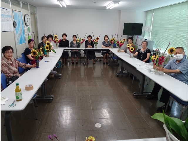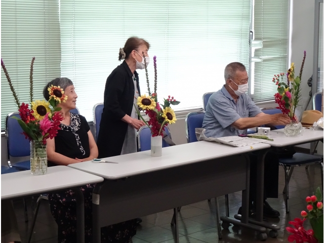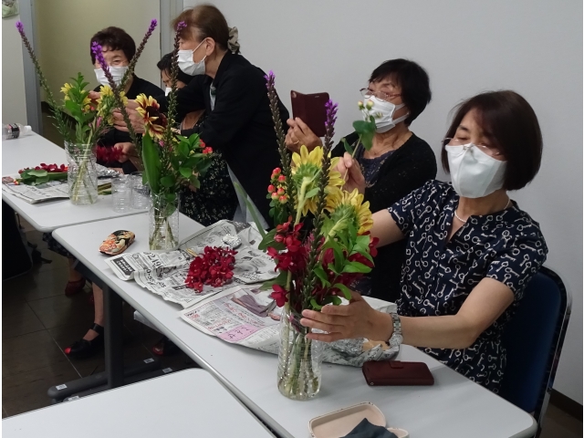 6月27日(木)、日本語で学びながら楽しく交流する「楽楽サロン」の今年度第3回を開催しました。今回は「生け花体験」と題して、華道の心得がある当センター日本語講師の指導により、生け花を楽しみました。参加者は11人でした。