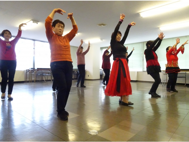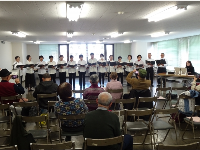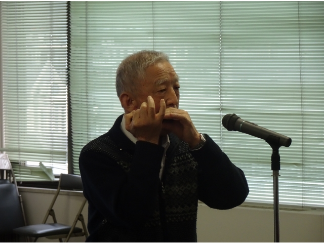 後半は中国の健康体操「練功十八法」の実演で幕を開け、ハーモニカによる中国の民謡など2曲の演奏、合唱・独唱6曲とダンス2曲。最後に参加者全員で「ふるさと」を合唱して、2時間余りの楽しい会を終えました。