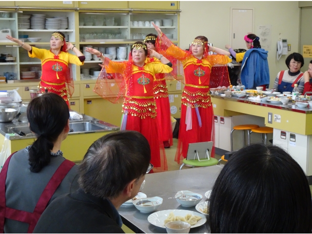 試食中には参加者のうちの有志が、揃いの衣装を身にまとって中国のダンスを披露するなど余興もあり、楽しい会となりました。