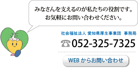 あなたが日々の暮らしで、社会的な手厚い支えを必要に感じたときは、愛知県厚生事業団が提供するサービスをご覧ください。